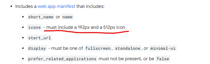 And since not even the first step is satisfied, the “beforeinstallprompt” event is never fired.