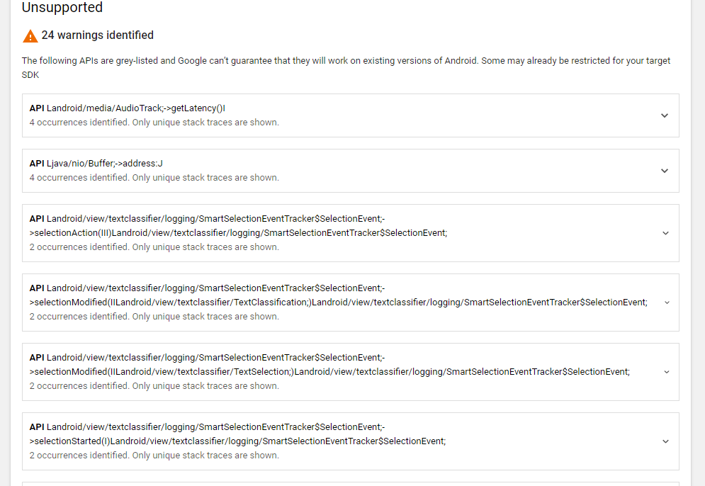 StrictMode policy violation: android.os.strictmode.NonSdkApiUsedViolation: Landroid/media/AudioTrack;->getLatency()I