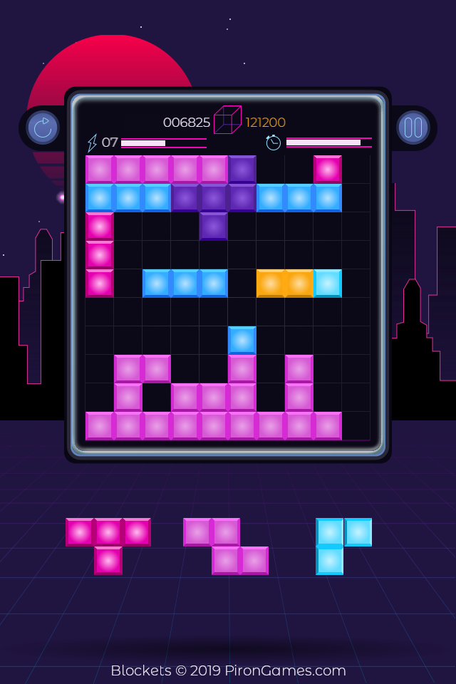 Blockets is a puzzle game where you have to place various shapes in a grid and complete lines and columns. The goal is to score as high as possible.
