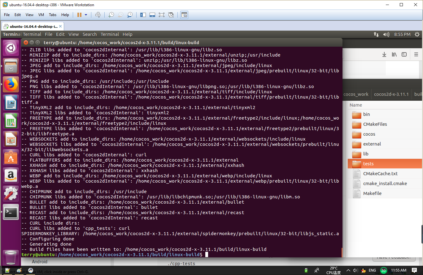 I started with clean vm - ubuntu16.04 32bit, cocos2d-x-3.11.1.zip