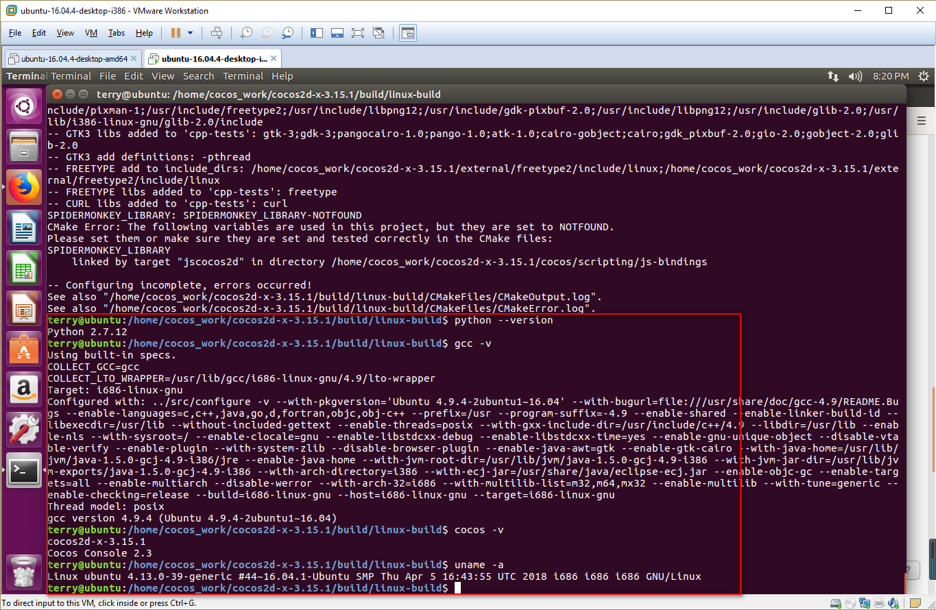 platform - ubuntu 16.04 i386, cocos2d-x-3.12