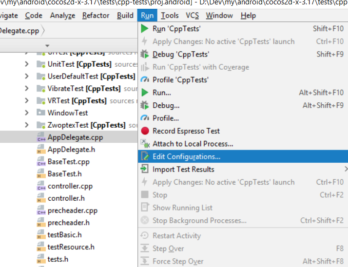 i downloaded letest cocos2d-x 3.17 compiled successfully in android studio and CppTest showen in the emulator