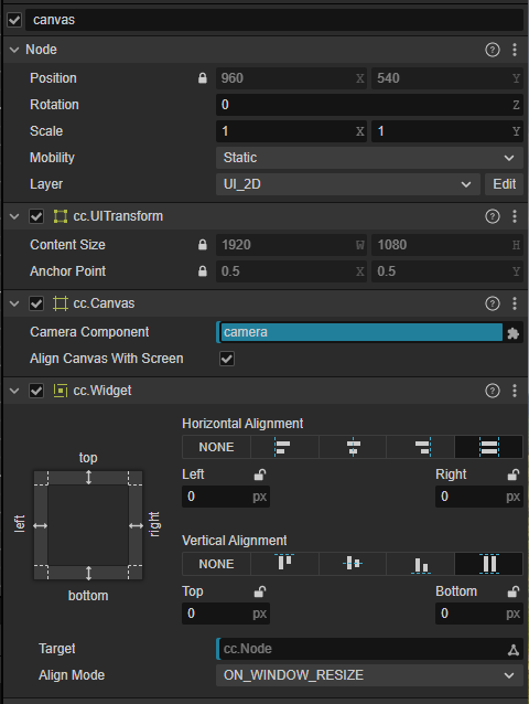 The canvas just stays with the same scale at the center of the screen without any adjustments.