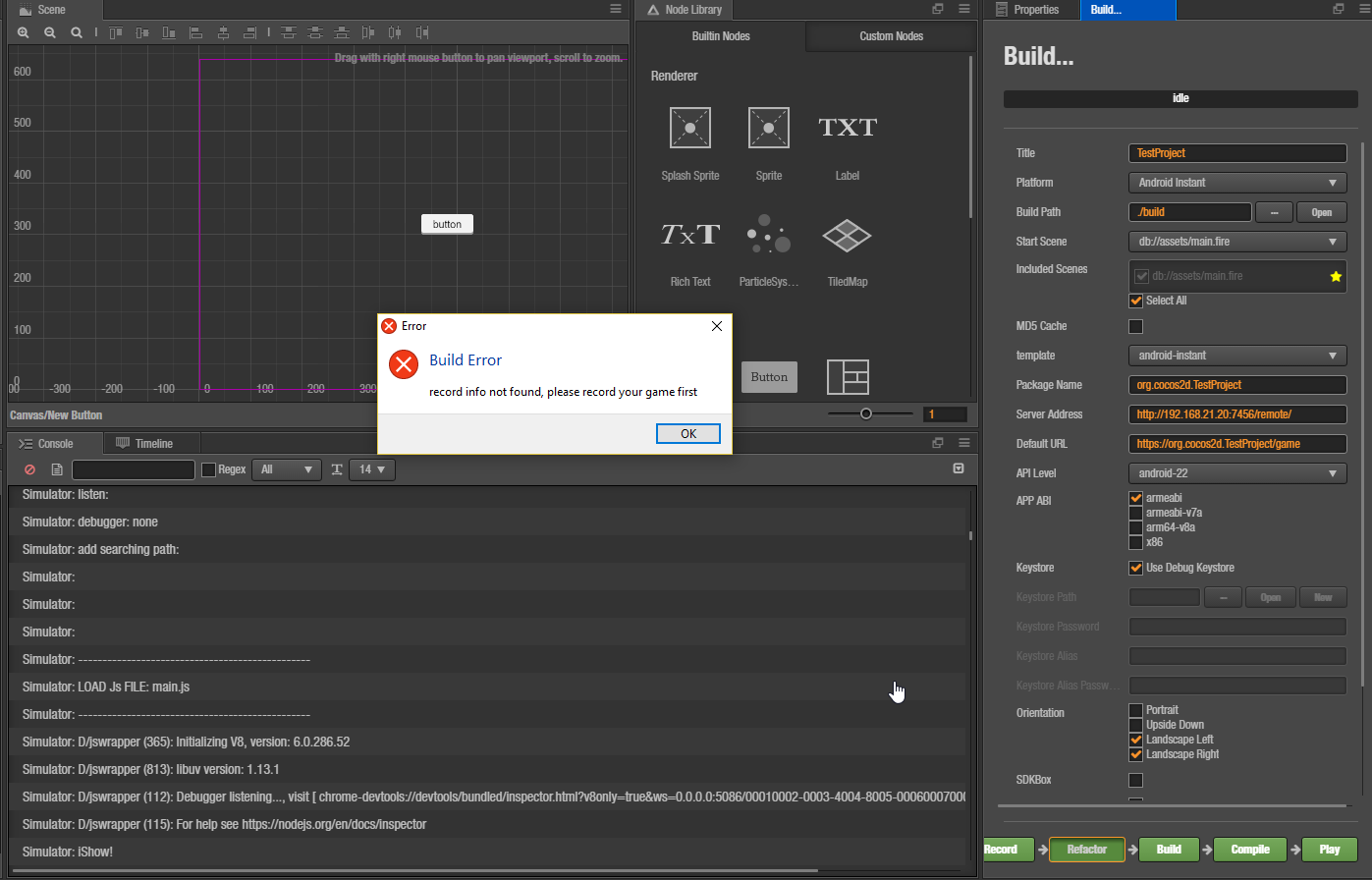 I’m not sure how it’s supposed to work but I imagine I should run Record and explore the game so the engine understand the part that are used and optimize the apk size. I’m doing Record and after it load I click on the button and close the simulator. What am I doing wrong?