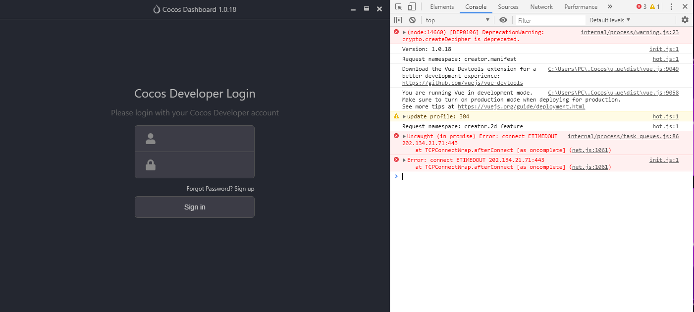 Cocos creator can not open project and cocos dashboard loading very slow