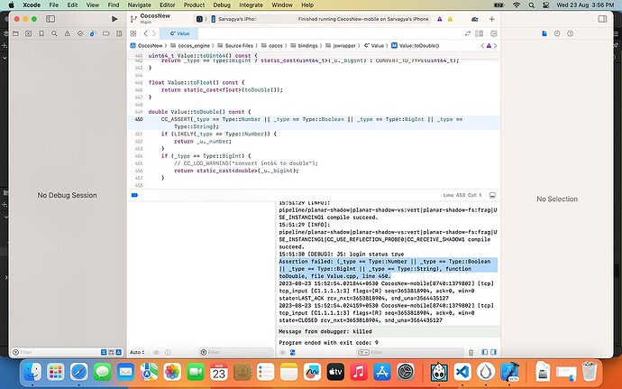 Login is successful but the scene doesnt change and it throws CC_ASSERT error