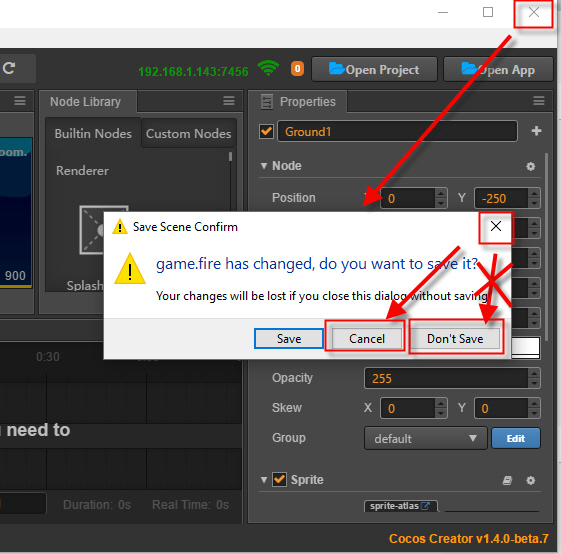 Now when I just close the window or press Cancel, I would expect to continue in the Cocos Creator editor. But the editor closes and my changes are lost. ![]()