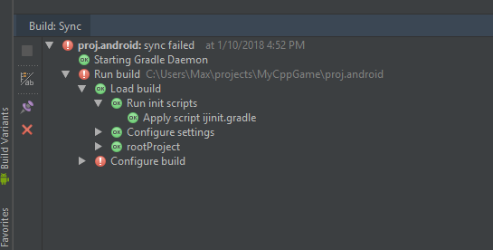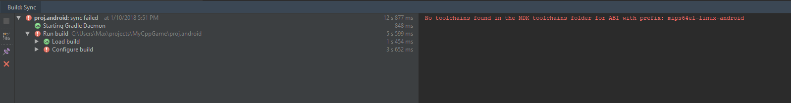 Do you see the same error with a new āemptyā project? Just create a new project and test it. If this also failed, we need to check you Android SDK/NDK configuration.