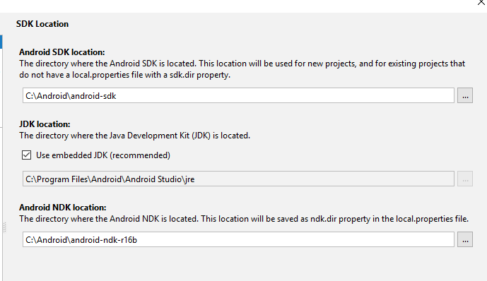 4) Also add NDK in Android-studio, go to "File" menu, than "Project Structure->SDK Location" and set the Android NDK Location