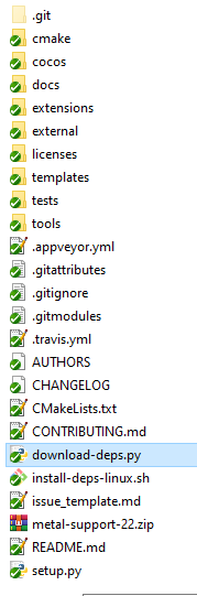 So, if you generated your project prior to running download_deps.py, then your project will have an empty ‘cocos2d/external/’ folder, and that is most likely the issue.