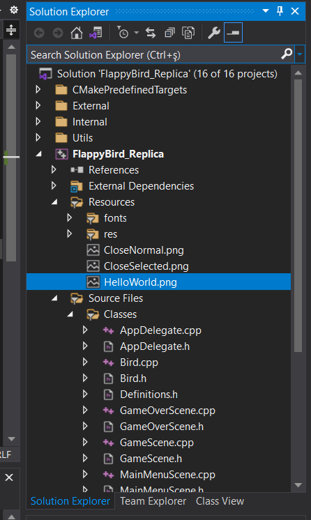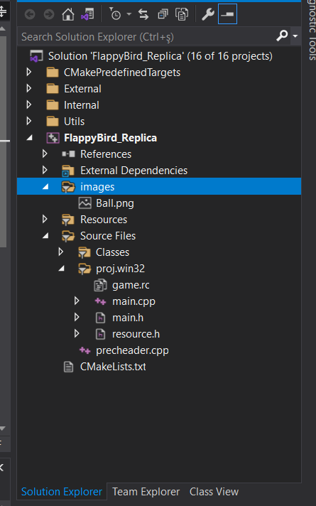If you add new graphics, you need to re-run the CMake command in order to update the Visual Studio solution file. Don’t add/remove files from the project/solution in the Visual Studio IDE; everything must be handled by CMake. Use the exact same command as the one used to initially create the Visual Studio solution, and run it in the root folder of your project, not in the build folder that you would have created for the Visual Studio solution.