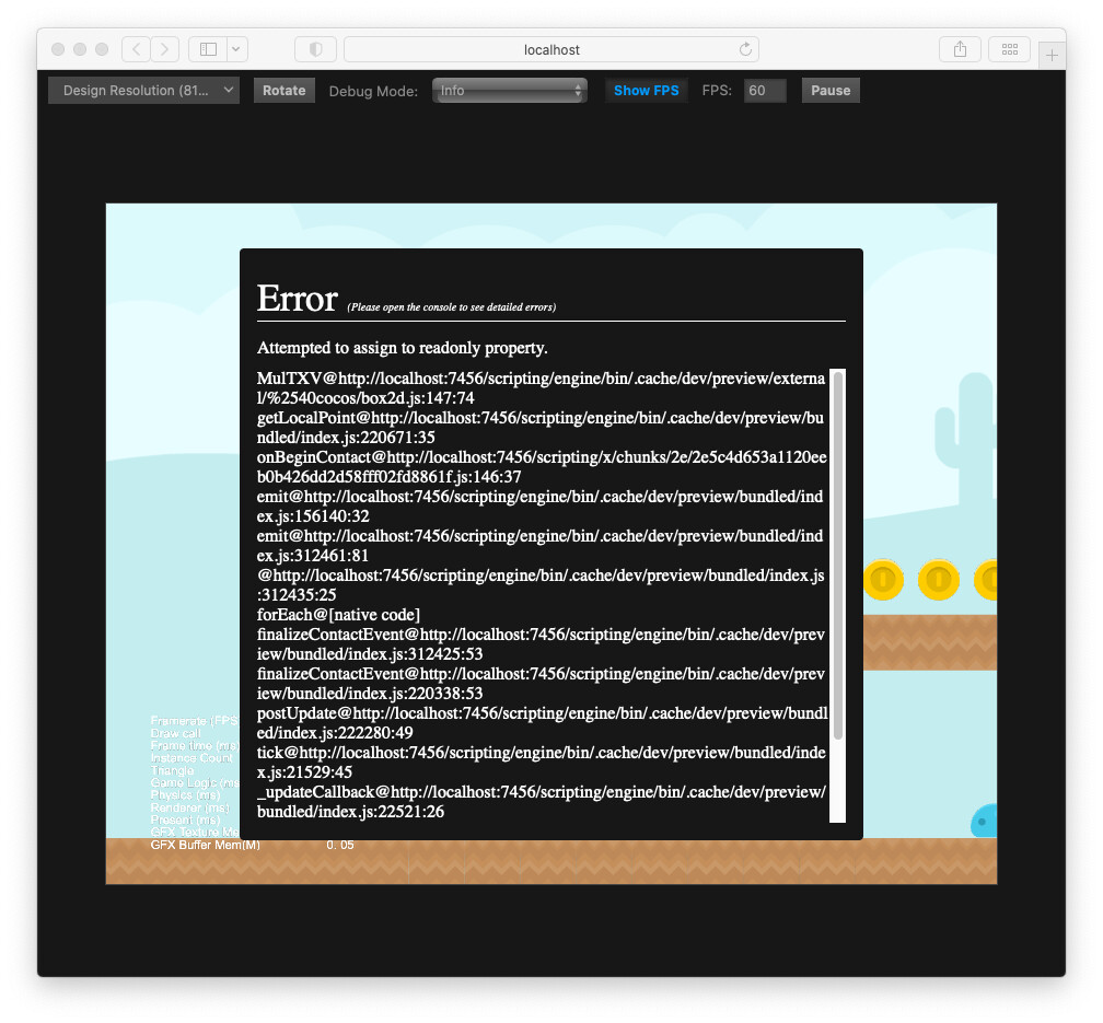 Can you share your collision callback function? It seems you are assigning readableonly variable?