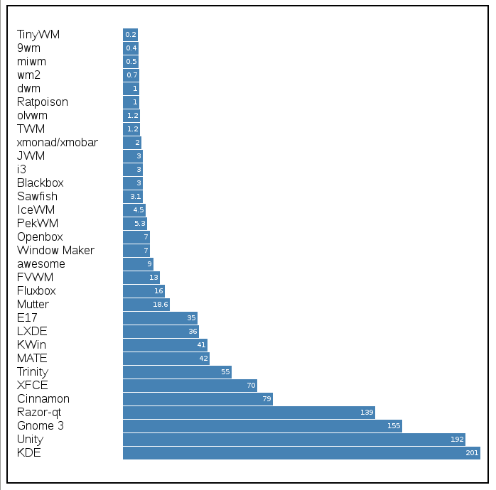 Different Window Managers consume amounts of RAM starting from 0.2MB up to 201MB.