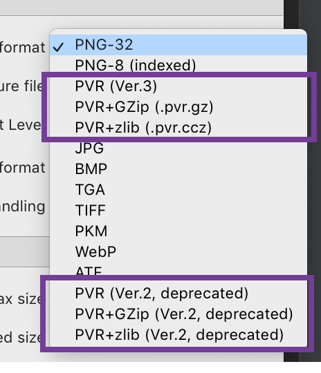 Also another question: How do you use Texture Packer in cocos creator? I built png texture atlas, and how to load the same atlas but in pvr format? If I set that png to build in pvr it won’t load becouse plist of the atlas is pointing to png file not the built pvr file… Is there a workaround ?