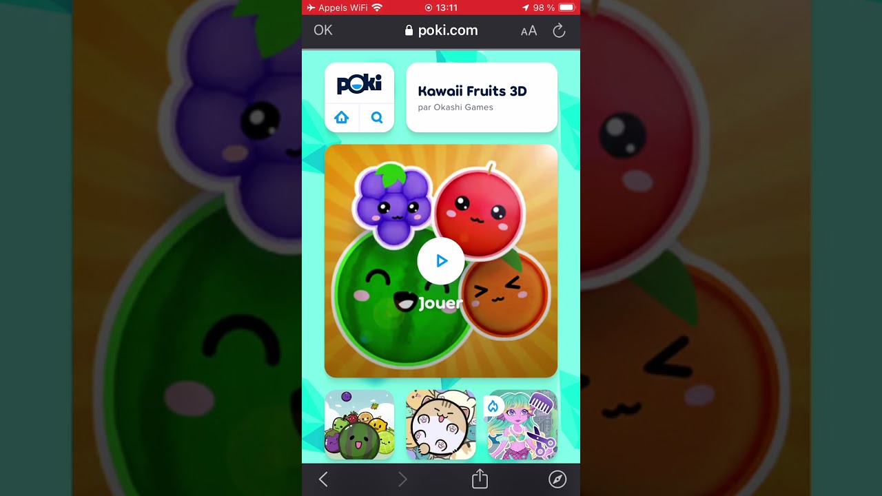 Try to launch the game with iOS here if you want to check the game slowing down for the first seconds: https://poki.com/fr/g/kawaii-fruits-3d