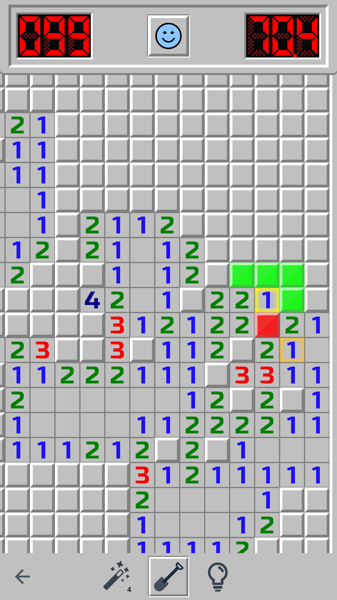 Smart Hints. Smart hint shows you tile configurations with safe squares that can be uncovered given the current state of the board. They not only indicate safe squares but also explain why they are safe.