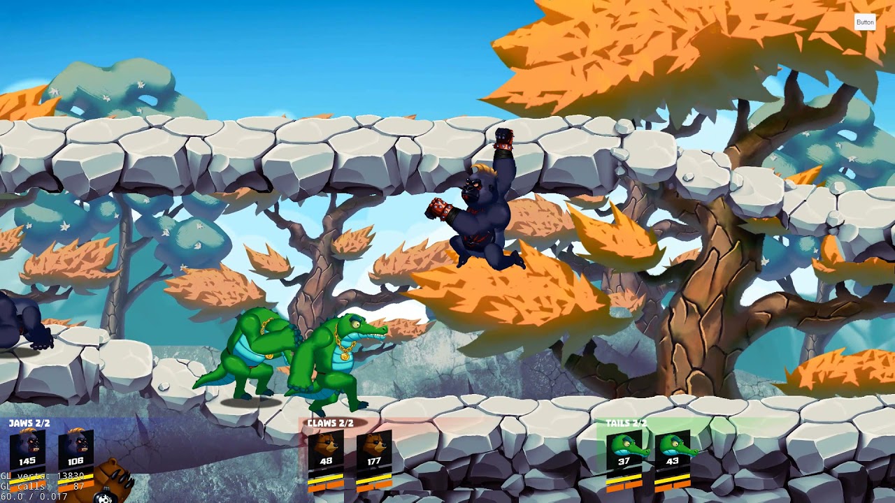 “Jaws & Claws” is a mix of such genres like 2D-platformer, fighter, beat’em up, party game. Gameplay is full of fights, gunfire, movement and rivalry.