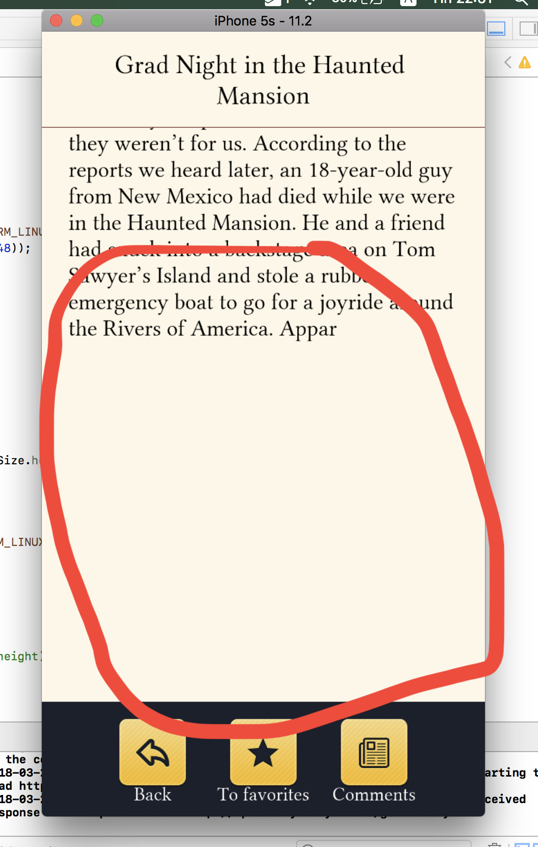 Scroll down until you can see empty place. It must be text not empty place.