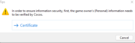 When I click the Certificate button, personal authentication section opens in cocos service web page. But I don’t know what should I put as Document Number.