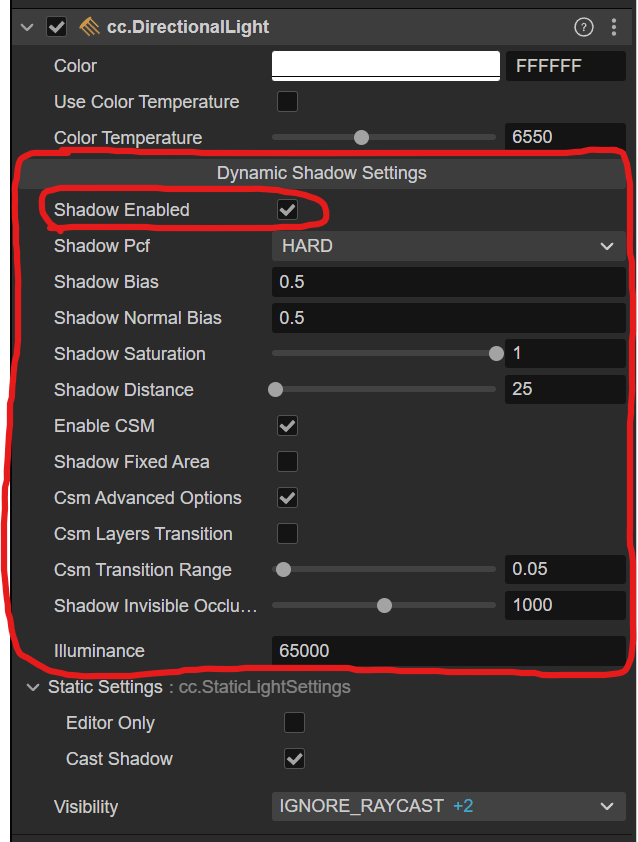 Accordingly, to enable it, you need to set the shadow type to ShadowMap, go to the light source, enable Dynamic Shadows, and then return the shadow type to Planar again.