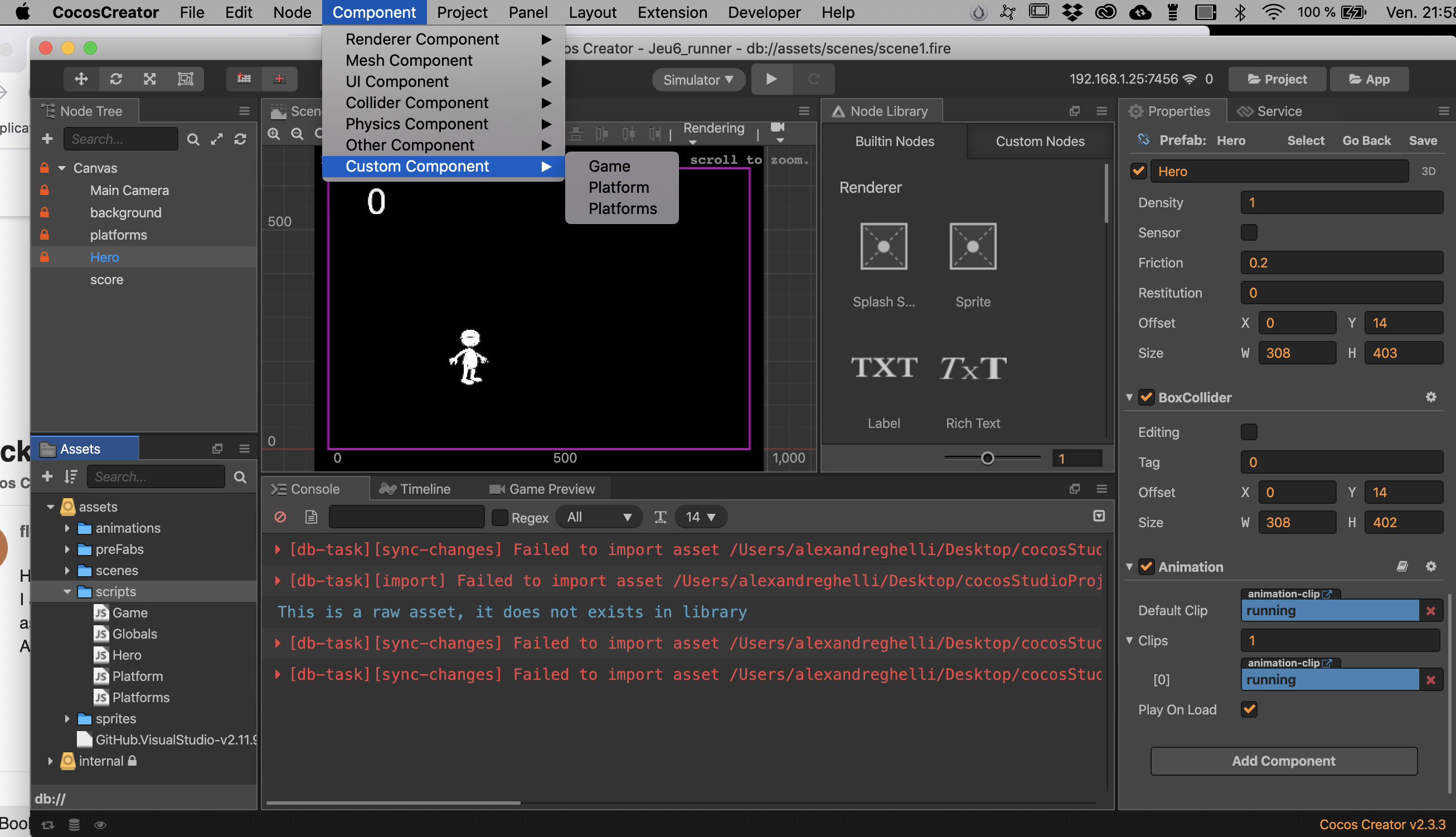 I have an issue, sometimes when i make a script and when i want too attach it to a node, it’s not appearing in add component. Here is a picture. The script Hero is there but not in had component.