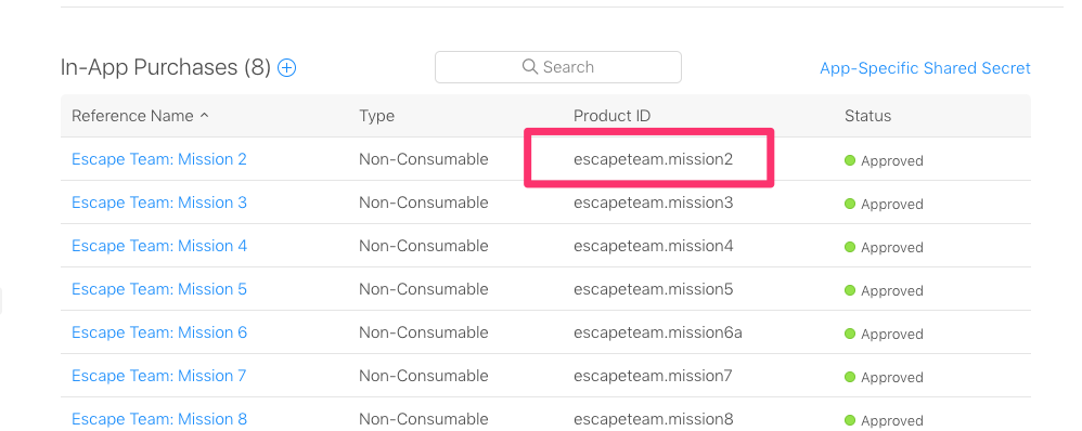 Then we have my ‘internal’ ID for that IAP, which is