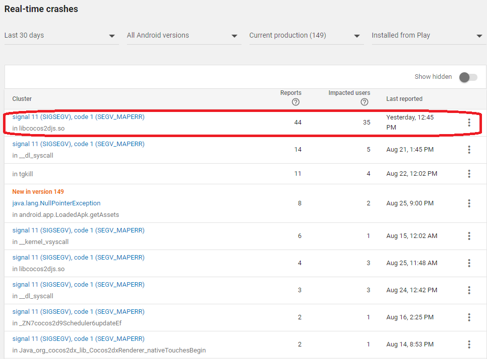 It’s occurs only in Android and it’s very unusual to happen, but it happens sometimes, and i don’t know why it’s occurs, is in random times. The game crashes.