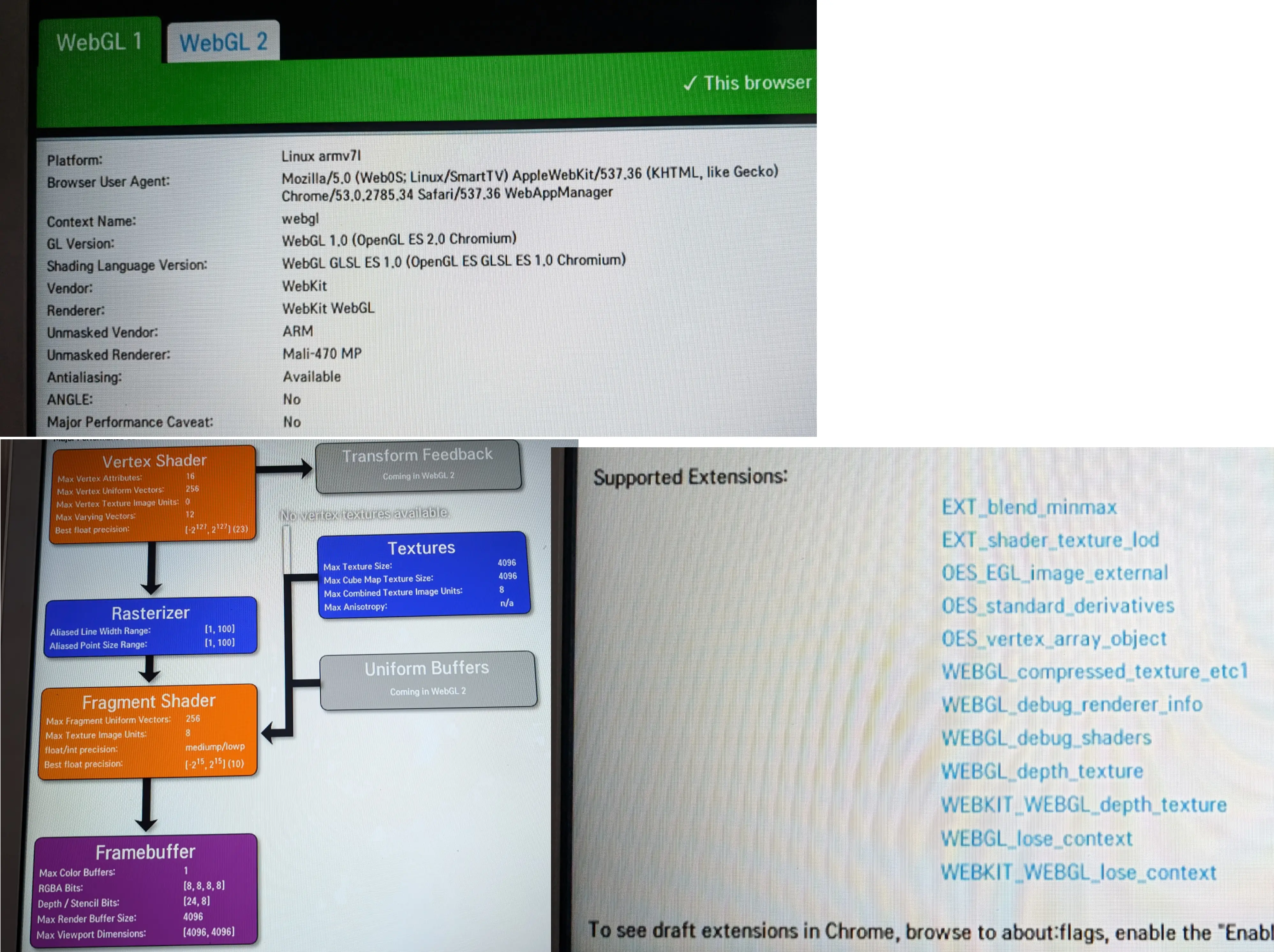Regarding Cocos Creator - I see the possibility of setting a browser target from the editor (browserslist query string - “defaults, chrome >37”), which gives hope. But when I try to test the build of an empty project - I get shader errors at startup on TV. Switching the render pipeline did not help. Am I missing something?